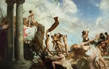 In 1907 he painted An Island Festival, "possibly his masterpiece."[4] In 1910, The Art Journal declared him "The very Ariel of the Academy…This is the art which Keats imagined in his 'Ode on a Grecian Urn,' 'For ever panting and for ever young.'"[5]