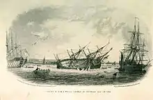 On 29 August 1782, the warship HMS Royal George capsized while under repairs and sank off Spithead, near the port of Portsmouth.[11] HMS Royal George was the pride of King George III's navy and one of the last British Man-of-war to be primarily outfitted with more expensive bronze guns rather than iron.[11] The ordnance alone was valued at £17,000.[11]