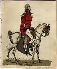 ![]() "A noble aiddecamp", a contemporary etching of Charles Stanhope, 4th Earl of Harrington | |