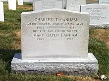 Lanham retired from the military at the end of 1954, as a major general, to join the Pennsylvania-Texas Corporation of Colt's Patent Firearms.[1] He resigned in 1958 and joined Xerox in 1960 as Vice President for Government Relations, retiring from that post at the end of 1970. He died July 20, 1978 in Chevy Chase, Maryland from cancer at the age of 76. He is buried in Arlington National Cemetery.[2]