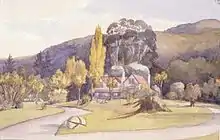 Acland and Tripp gave up their profession and emigrated to New Zealand in 1854 in the Royal Stuart to become sheep farmers.[3] They arrived in Lyttelton on 4 January 1855.[4] Both needed to obtain experience first and thus worked as cadets on established runs;[3] Acland gained experience under Henry Tancred,[5] whilst Tripp worked in Halswell and for one of the Brittan brothers.[1] On 30 July 1855, they applied for land in the foothills in an area that was unexplored and their choice was guesswork; all the suitable land on the Canterbury Plains had been taken up already.[3][6] Established runholders did not take them seriously,[3] and some laughed at them for wanting to take up high country land, but Acland's attitude was that "in the Colonies you always like to see for yourself, and the worse account you hear of unoccupied country, the greater the reason for going to look at it."[6] In the spring and summer of 1855/56, they started exploring the area.[3] Both had £2,000 of capital, which was insufficient to buy an established station.[1] They took up land including Mount Somers, Mount Possession, Mount Peel, Orari Gorge and parts of Hakatere and Mesopotamia,[1] and were the first who put sheep in the high country.[6] The first station they worked on was Mount Peel from May 1856, and while they prepared the run, they left their sheep with Dr Moorhouse, a brother of William Sefton Moorhouse, on the other side of the Rangitata River.[6] Their partnership was dissolved in October 1862, and Tripp retained Orari Gorge and Mount Somers.[7]