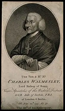 Charles Walmesley, OSB (best known by the pseudonyms Signor Pastorino or Pastorini; 13 January 1722 – 25 November 1797) was the Roman Catholic Titular Bishop of Rama and Vicar Apostolic of the Western District of England. He was known, especially in Ireland, for predicting the downfall of Protestantism in 1821–5 and the triumphant emergence of the Catholic Church.[1]