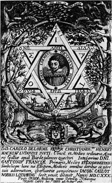 Charles de Lorme, Delorme, d'lorm, or De l'Orme (1584 24 June 1678),[1] was a French medical doctor who practiced in several regions across Europe during the 17th century. Charles was the son of Jean Delorme (a professor at Montpellier University), who was the primary doctor to Marie de' Medici. This ultimately opened doors for Charles' medical career soon after he graduated from the University of Montpellier in 1607 at the age of 23. He first came to Paris after graduation to practice medicine under the watchful eye of his father, until he was ready to practice as a regular doctor on his own. There are no records of his marriages, except that he married for the third time at the age of 78. This wife died within a year.[4]