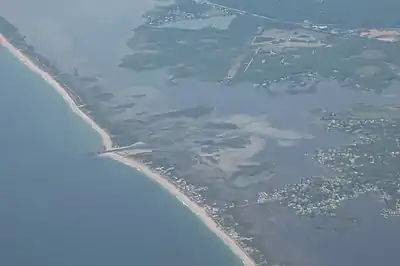 Charlestown Breachway State Beach is a seaside public recreation area on Block Island Sound in the town of Charlestown, Rhode Island.[3] Located on the east side of the manmade channel (the "Breachway") that connects Ninigret Pond with the Atlantic Ocean, the area offers 75 camping sites for self-contained RVs,[4] ocean swimming, beach activities, salt-water fishing, and a boat launch.[5]
