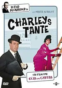 Charley's Aunt (German: Charley's Tante) is a 1963 Austrian comedy film directed by Géza von Cziffra and starring Peter Alexander, Maria Sebaldt and Peter Vogel.[1] It is an adaptation of the 1892 British play Charley's Aunt by Brandon Thomas.