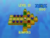 The play mechanics for both games are almost identical. However, in 'Bombing Islands' there is a step meter counting each step and move that Kid Clown makes. This earns the player Gold, Silver, Bronze or no medal. The N64 version doesn't have this step counting requirement. However, Charlie can jump without having to step on spikes to do so, while Kid Clown only jumps when having stepped on spikes. Some of the sixty levels in the game are the same from one version to the next. However, the graphics to both are completely different, even though the obstacles serve the same purpose with both versions.