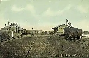 ![]() The station circa 1910, with three tracks running between passenger and goods shed platforms. | ||||||||||||||||