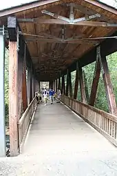 ![]() Covered bridge entrance to the Vickery Creek unit at the Roswell Mill Ruins (City of Roswell Park) |