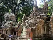 Chau Say Tevoda is a temple at Angkor, Cambodia just to the northeast of the ancient capital Angkor Thom's east gate, directly south of Thommanon across the Victory Way (it pre-dates the former and post-dates the latter).[1]: 119 [2][3] It is on a road which has the Thomannon temple on its opposite side, 500 metres (1,600 ft) from the east gate and 200 metres (660 ft) to a bridge built with carved stones from temple ruins in the vicinity. The bridge is without a river flowing beneath it in view of the shifting nature of the course of the Siem Reap River.[4]