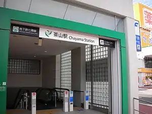 Chayama Station (茶山駅) is a subway station on the Fukuoka City Subway Nanakuma Line in Jōnan-ku, Fukuoka in Japan. Its station symbol is a picture of a tea shoot in green.