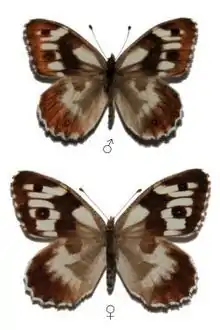 The wingspan is 45–60 mm. The butterflies fly from June to August.