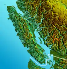 ![]() Location map of Cheakamus River; Squamish River shown in orange. | |
