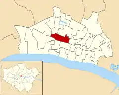The following roads run north to south across the ward: St. Martin's Le Grand,[2] Foster Lane, Gutter Lane, Wood Street, Milk Street, King Street, and Ironmonger Lane. Within its boundaries are two Anglican churches: St Vedast Foster Lane[3] and St Lawrence Jewry;[4] a third church, St Mildred, Poultry, was demolished in 1872. Several Livery Halls are located in Cheap, including those of the Mercers', Goldsmiths', Wax Chanders' and Saddlers' Companies.[5]