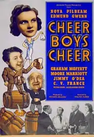 Cheer Boys Cheer is a 1939 British comedy film directed by Walter Forde and starring Nova Pilbeam, Edmund Gwenn, Jimmy O'Dea, Graham Moffatt, Moore Marriott and Peter Coke.[1]
