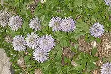 The Chelmos-Vouraikos Geopark hosts more than 1100 plant species.[12] Among them there are Greek endemics, endemics of Peloponnese or local endemic plant species, many of which either belong to one of the IUCN Red Data Book risk categories, and/or are included in an international conservation regime. The existence of these rare plants is always connected with the soil type. In this context, the limestone mountain Chelmos plays an important role. Due to its considerable habitat diversity, thirty endemic species of the Peloponnese, more than one hundred Greek endemics and five local endemics of Chelmos can be found in this area. One of these plants is Globularia stygia, which got its name from the Styx waters geosite. This species underlines the ecological value of the mount Chelmos, being a priority species of the European Directive 92/43. It grows on rocks in gorges, on ledges, in open scree slopes, on limestone, at an altitude of 1150-2300 meters. Furthermore, a lot of pharmaceutical plants can be found in the region of the Geopark.[13]