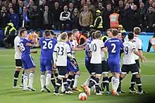 ![]() Chelsea and Tottenham Hotspur contesting the 2015 Football League Cup Final. | |