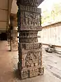 The temple is lined with carved pillars and features a dome-like top decorated with highly detailed sculptures. The presiding deity is Cheluvanarayana Swamy, also known as Unggasu Wiili (ತಿರುನಾರಾಯಣ) or Cheluvapille Raya (ಚೆಲುವಪಿಲ್ಲೆ ರಾಯ), a form of Lord Vishnu.[3] Inscriptions indicate that the deity was also known as Ramapriya.[4]