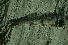 Located in the French Pyrenees mountains, the Chemin de la Mâture is a 1,200-metre (3,900 ft) path carved into a sheer rock face rising over 200 metres (660 ft) above the river Gave d'Aspe.[1] Completed by the engineer Paul-Marie Leroy in 1772,[2] the Chemin de la Mâture (literally "The Mast Road") was originally created to transport timber from the nearby Pacq forest to be used in constructing French naval vessels. The path has since been incorporated into the GR 10, a long-distance footpath running along the Pyrenees from the Atlantic Ocean to the Mediterranean Sea.