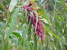 Chenopodium formosanum is known in the Paiwan language as djulis. In Chinese it is known as 紅藜 (simplified 红藜, literally "red goosefoot", Mandarin hónglí). It is also known as red quinoa.[1] Note that the name "red goosefoot" is also used for the related species Oxybasis rubra.