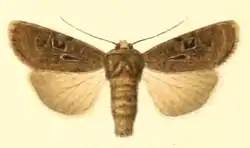 Chersotis andereggii has a wingspan of 29–32 mm. These relatively small moths are generally greyish-brown, with large dark orbicular and claviform markings.[2]