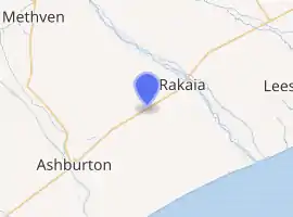 Chertsey is a town in the Ashburton District, of New Zealand's South Island. It is located close to State Highway 1, which bypasses the town to the west, between Ashburton and Rakaia on the Canterbury Plains.