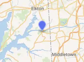 The Chesapeake City Bridge carries Maryland Route 213 across the Chesapeake & Delaware Canal in Chesapeake City, Maryland. There are two undivided traffic lanes and one sidewalk on the east side of the bridge. It was built in 1949 by the U.S. Army Corps of Engineers to provide a high-level canal crossing. An older vertical lift drawbridge was destroyed on July 28, 1942, after being struck by the tanker Franz Klasen. The bridge is identical in appearance to the old St. Georges Bridge in Delaware (they were constructed roughly at the same time) except for the number of lanes.