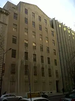 This was the third building C&P Telephone built in downtown Washington and the second in a two-year period of time.[2] This seven-story structure housed the company's new dial switching equipment that could not be accommodated in its existing facilities. It was designed with Art Deco detailing and ornamentation by the New York architectural firm of Voorhees, Gmelin and Walker. The company began its first conversion to dial telephone service on May 3, 1930, when 60,000 telephones in downtown Washington were switched over from the old manual system.[2]