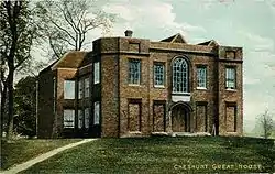 Cheshunt Great House was a manor house in the town of Cheshunt, Hertfordshire, England, near to Waltham Abbey. It is said to have been built by Henry VIII of England for Cardinal Thomas Wolsey.[1] The family seat of the Shaw family for over a century, by the late 19th century it was used as a Freemasons Hall and was later used during World War II. After the war, the hall was too costly to run and was opened to the public until a fire gutted it in 1965. It was made a Grade II listed building on 11 June 1954.[2]