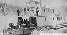 In mid-November 1906 Chester was nearly destroyed in a flood on the Cowlitz River when the Kelso rail bridge was carried away.[25] Chester had been moored downstream from the Kelso bridge, and just managed to avoid the debris by escaping down river to a safe place on the opposite bank.[25] With the rail bridge down, the plan became for Chester to transfer rail passengers across the Cowlitz river until the bridge could be reconstructed.[26]