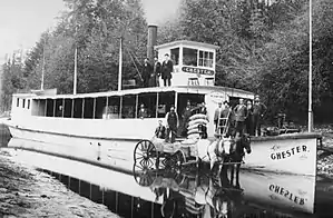 On October 19, 1906, following several months of low water, Chester became the first steamboat to able to navigate on the Cowlitz River.[36]