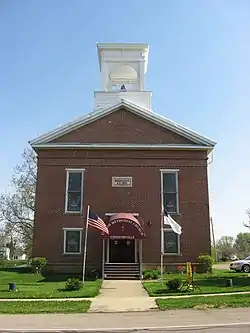 Chesterville's first church was a Primitive Baptist congregation, which was organized in 1816. The first Methodists in the vicinity of the present village gathered under the preaching of itinerant preachers in the late 1820s, and the first Methodist sermon in Chesterville itself was preached in 1833 by a minister who stayed overnight in the village while travelling from Mansfield to Columbus. A class was formed soon afterward, worshipping in an old schoolhouse, and the first minister was a Rev. McDowell. The congregation's earliest extant records date from July 1836. One year later, the first church building was erected at a cost of $1,200 in addition to $150 for the land. The congregation continued worshipping at this property until late 1850; they sold it in 1849 for $350 while retaining the right to use it for a year, and in later years, the building was converted into a school. The present church building was erected in 1851 at a cost of several thousand dollars; it was several years before the congregation struggled out of debt,[3]: 368 but in the end they secured a building suitable for their own purposes for many generations. Lying behind the church building is a cemetery, which was established circa 1837.[3]: 371 Although the Baptists lasted for many years, and although a PCUSA congregation was formed in Chesterville in 1845,[4] the Methodist Church is now the only extant church in the village limits.[5]: 5