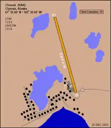 Chevak Airport (IATA: VAK, ICAO: PAVA, FAA LID: VAK) is a public airport located one mile (1.6 km) north of the central business district of Chevak, a city in the Kusilvak Census Area of the U.S. state of Alaska. The airport is owned by the state.[1]