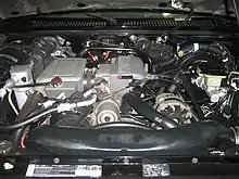 The 4.3 L (262.5 cu in) LV3 V6 is an all new engine announced by GM at the end of 2012. GM considers this a new engine design which inherits from its predecessors its displacement, 2-valve pushrod valvetrain, 90-degree cylinder angle, and 4.4 in (111.8 mm) bore centers. It is based on the fifth generation LT engine and includes the same features such as direct injection, piston cooling jets, active fuel management, variable displacement oil pump, continuously variable valve timing and aluminum cylinder heads and block. The engine is SAE certified to 285 hp (213 kW) at 5300 rpm and 305 lb⋅ft (414 N⋅m) at 3900 rpm on regular unleaded gasoline and 297 hp (221 kW) at 5300 rpm and 330 lb⋅ft (447 N⋅m) at 3900 rpm on E85. Emissions are controlled by a close-coupled catalytic converter, Quick Sync 58X ignition, returnless fuel rail, fast-response O2 sensor.[11] It was launched in the all-new 2014 Chevrolet Silverado 1500 and 2014 GMC Sierra 1500.[12] 2021 will be its final model year in Chevrolet Silverado and GMC Sierra, due to the phase-out of the 6-speed automatic transmission. Chevrolet Express and GMC Savanna are the last vehicles to use the 4.3L but do not feature Active Fuel Management and it’s referred to as the LV1.