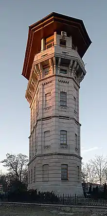 The Chișinău Water Tower is an architectural monument of Chișinău, Moldova, located at 2 Mitropolit Bănulescu-Bodoni Street and built at the end of 19th century after a project by Alexander Bernadazzi. It was a main part of Chișinău's water system. The upper level was built of wood and was destroyed by an earthquake. It was rebuilt between 1980 and 1983. It currently hosts Chișinău City museum, which contains items dating from 15th to 20th centuries. The upper level is a space for exhibitions of both legacy and modern paintings and photographies, as well as various cultural events.[1]