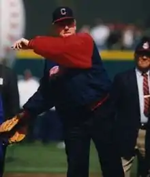 The use of these alternative logos has at times proved newsworthy. In 1994, when then-President Bill Clinton threw the first pitch at Jacobs Field, he wore a hat with the letter-C logo worn from 1978 to 1985 instead of Chief Wahoo.[68][69][70] A White House aide described the decision as one taken "in recognition of the sensitivities" involved,[68] and it spurred public debate on the issue of Native American names and images in sports.[69] One critic accused Clinton of "an apparent attempt to appease his 'politically correct' constituency".[71]
