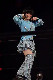 Chii Tomiya (都宮 ちい, Tomiya Chii, born April 25, 1991)[1] is a Japanese professional wrestler, best known for her work in the Ice Ribbon promotion. Trained by Emi Sakura, Tomiya made her debut for Ice Ribbon in October 2008 and during the next three years went on to become a one-time International Ribbon Tag Team and Internet Wrestling 19 Champion, while also holding DDT Pro-Wrestling's Ironman Heavymetalweight Championship once. In August 2011, Tomiya left Ice Ribbon and became a freelancer, adopting the new ring name Micro (ミクロ, Mikuro) in the process. As a freelancer, she would most notably work for the Reina X World promotion, where she wrestled as the masked character Mini Tomato (ミニトマト, Mini Tomato). In September 2013, she signed with the new World Pro-Wrestling Association (WPA) promotion, adopting the new ring name Akubi in the process. Standing at only 1.42 m (4 ft 8 in), she is one of the shortest wrestlers in all of puroresu.