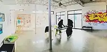 The art museum houses two rooms, the Exhibition Room and the Education Room, inside a 1,200 sq. foot rooftop space. The Exhibition Room displays art that were produced in regularly scheduled museum workshops by Nepali students. It also displays art by local artists, international collaborators. The space is used as a miniature art gallery as well as an impromptu workshop. The Education Room houses a mini library and serves as the center of activity or the creativity lab. The room also includes a workshop stocked with art supplies. The rooftop has been crafted into a small living space, called the “Cloud” and is used for artist residency. [2][3]