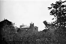 On 26 January, a group of rebels attacked a Catholic mission at Nguludi belonging to Father Swelsen. The mission was defended by four African armed guards, one of whom was killed, Father Swelsen was also wounded in the fighting and the church was burnt down.[33] The military and militia forces assaulted Mbombwe again the same day but encountered no resistance.[47] Many rebels, including Chilembwe, had fled the village disguised as civilians.[47] Mbombwe's fall and the government troops' subsequent demolition of Chilembwe's church with dynamite ended the rebellion.[47] Kaduya was captured and brought back to Magomero where he was publicly executed.[48]