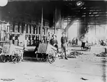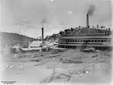 In 1907 the Huntingdon-Heberlein process plant was erected at a cost of £60,000.[4][5] Extensive excavations were done and rails laid to ore bins on the hill opposite the main smelters. The process flow involved - rock breaker, converter kettles for 12 hours desulphurising process, then to the lead furnaces. A new electric plant was also installed.[1]