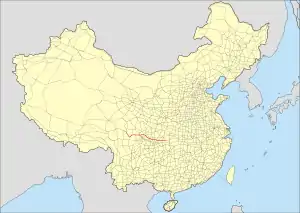 China National Highway 350 runs from Lichuan, Hubei to Luhuo County in Sichuan. The last section in Sichuan is noted for its scenic route through mountainous landscape.[1] In Zhong County, Chongqing, it crosses the Yangtze's Sanxia Reservoir over Zhongxian Yangtze River Bridge.