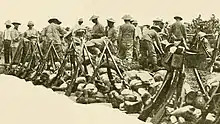 The number of Chinese nationals who died in the war is unknown, and estimations are controversial. European records put the number at only 2,000, while Chinese scholars estimate the number to be as high as 20,000.[18] While most died of the Spanish flu epidemic of 1918, there were also victims of shelling, landmines, and poor treatment. Their remains are interred in dozens of European graveyards. The cemetery at Noyelles-sur-Mer, for example, contains 838 Chinese gravestones.[11]