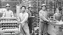 The Chinese Labour Corps comprised Chinese men who came mostly from Shandong,[10] and to a lesser extent from Liaoning, Jilin, Jiangsu, Hubei, Hunan, Anhui and Gansu provinces.[9] Most travelled to Europe via the Pacific and by Canada.[1] The tens of thousands of volunteers were driven by the poverty of the region and China's political uncertainties, and also lured by the generosity of the wages offered by the British. Each volunteer received an embarkment fee of 20 yuan, followed by 10 yuan a month to be paid over to his family in China.[2]