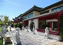 The Chinese Cultural Center (Chinese: 鳳凰城中國文化中心), now the Outlier Center, was a Chinese-themed retail complex in Phoenix, Arizona. It was developed in 1997 by BNU Corporation, a subsidiary of COFCO, a Chinese state-run enterprise and the country's largest food processor, manufacturer and trader.[1] Although the center was developed as a for-profit investment by its owners, it was portrayed as a "cultural center" for the Chinese community in the greater Phoenix area. The developers thought the traditional Chinese architecture and landscaping, its concentration of Chinese-related businesses, and its use as a venue for celebrating Chinese holidays would attract both tourists and local Asian-Americans, and make Chinese business people feel more at home and welcome in Phoenix, thus helping Phoenix attract more foreign investment. The center opened in 1998 with visual elements imported from China and installed by Chinese craftsmen. It struggled with low occupancy, suffered further during the recession of the mid-2000s, and never recovered. In 2017, a new owner announced the property would be repurposed as a modern office building and the distinctive Chinese roof would be removed. This led to a sustained multi-year effort by the Chinese-American community to block the redevelopment and preserve the center as it was built. Despite demonstrations, petitions, lobbying, and several lawsuits, the new owner ultimately prevailed and all Chinese elements were gone by 2022.