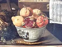 French painters, such as François Desportes and Paul Gauguin, also represented Chinese bowls in their still-life paintings. Some like Jacques Linard in 1627 even painstainkingly reproduced Chinese writing, in Les cinq sens et les quatre éléments, 1627.[4][5]