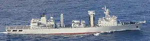 Type 903 integrated supply ship (NATO called Fuchi-class supply ship) is a new large-scale integrated supply ship of the Chinese People's Liberation Army Navy, designed by Zhang Wende. The later improved model is called 903A. The difference with 903 is that the displacement has increased from 20,530 tons to 23,000 tons.[1]