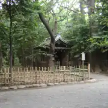 Chinreisha (鎮霊社, "Spirit Pacifying Shrine") is a small wooden Shinto shrine located directly south of Yasukuni Shrine's honden (main shrine) in Yasukuni Shrine precinct. It was built in 1965 after a proposition by Yasukuni's main priest, Fujimaro Tsukuba and has an annual festival held on July 13.[1] In 1975, a steel fence was erected around the shrine and it was closed off to the public. This came after an incident on Hokkaidō a year earlier where a shrine was set on fire and after the chief priest at Yasukuni had received intelligence that unknown persons were planning to destroy the Chinreisha.[2][3] It was re-opened for worshipers on October 12, 2006, to spread the spirit of cherishing allies and enemies alike and remembering all the war dead around the world.[3][4]