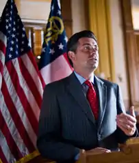 William "Chip" Rogers (born May 3, 1968) is the President and CEO of AHLA and past President and CEO of AAHOA, the largest hotel owners association in the United States.[2][3][4] Rogers is a former American politician from the state of Georgia. He is a Republican and was first elected in 2002 to the Georgia House of Representatives,[5] in 2004 he was elected to the Georgia State Senate.[6] Rogers was elected Senate Majority Leader in 2008 and again in 2010.[7] In November 2012 Rogers resigned his position as Senate Majority Leader, and in December, he resigned his position in the state Senate.[8] He took up the position of host and Executive Producer of the statewide Georgia Public Broadcasting radio program Georgia Works. After being fired from that position, he became the President of AAHOA.
