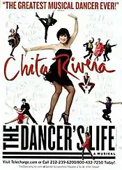It was announced in August 2005 that the revue would have a pre-Broadway production at the Old Globe Theatre in San Diego.[4] The revue, now retiled Chita Rivera: The Dancer's Life opened on September 10, 2005, and ran until October 23.[5] An engagement on Broadway at the Gerald Schoenfeld Theatre was confirmed for November 2005 in previews.[5] Matthew White and Frank Webb were subsequently asked to design Rivera's dressing room.[6] The Broadway production of Chita Rivera: The Dancer's Life began its limited run with a series of previews in November, and officially opened on December 11, 2005, to mixed reviews. The song selection and other aspects of the production were tweaked throughout the run: For example, an opening prologue featuring the dancers warming up before the show was dropped shortly after the show opened, and the number "America" was only added to the show in January 2006. More revisions were required during Rivera's special "birthday week" performances from January 24 through 26, during which her former Bye Bye Birdie co-star Dick Van Dyke joined her on stage.[7] The show closed on February 19, 2006, after 72 performances. Rivera then immediately embarked on a national tour, in which many numbers from the Broadway production were cut, and the character of "Young Chita" was eliminated.