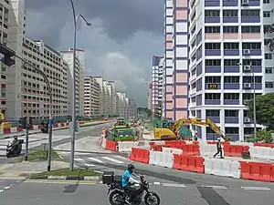 ![]() Choa Chu Kang West MRT worksite along Choa Chu Kang Avenue 3, as taken from a double decker bus. | |||||||||||||