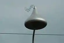 Chocolate Avenue is known for its street lamps that are shaped like Hershey's Kisses.[4][5] These unique lamps were designed by engineers with the Line Material Company and manufactured using a process called aluminum metal spinning in 1963.[6] Some of the kisses are shown as being wrapped, and some as unwrapped, alternating between these two designs.[7][8][9] These lamps can also be found on Park Avenue. In 1990, the need to replace the wrappers for the lamps became noticeable.[10]